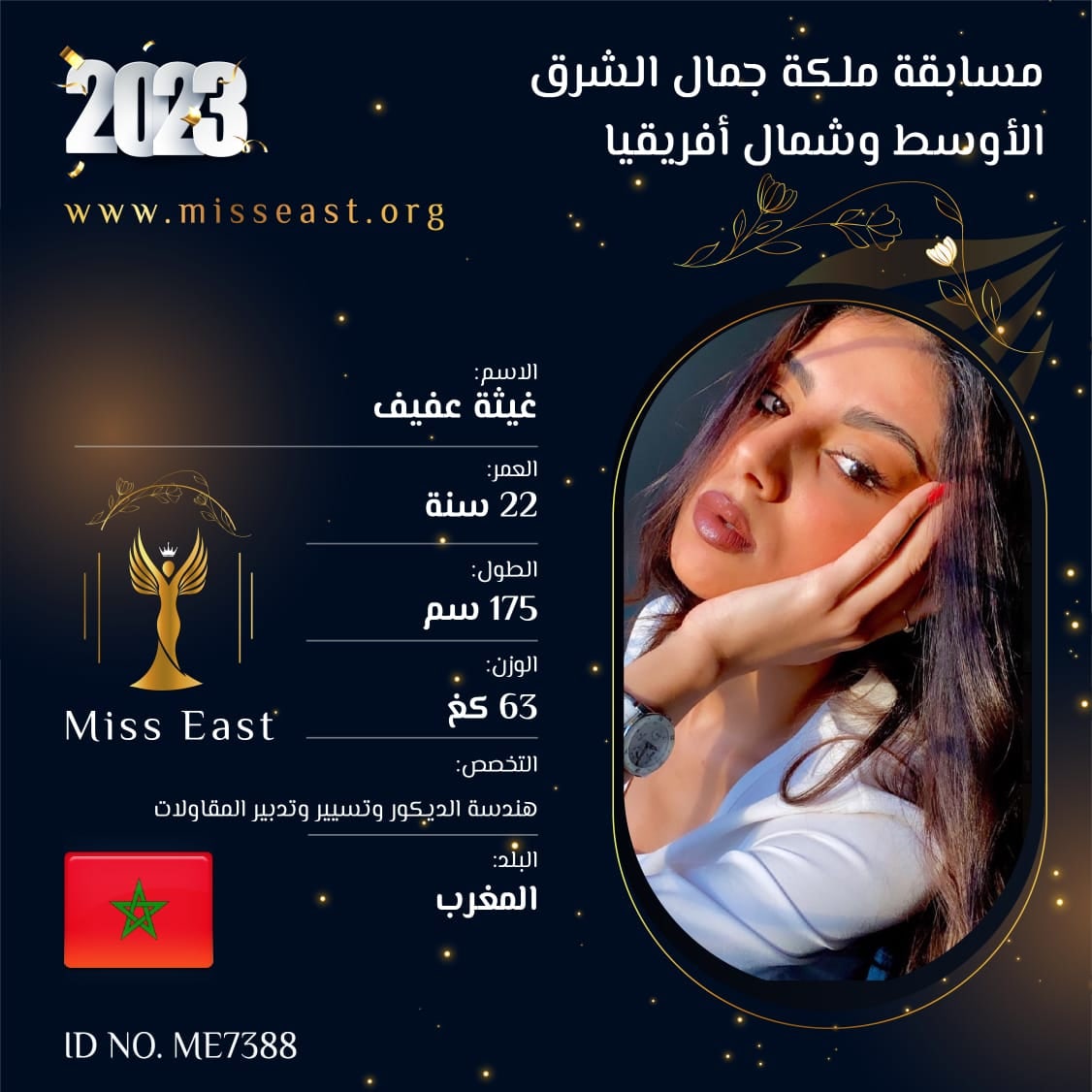 غيثة عفيف 0 صوت العمر :22 الدولة : المغرب انضمت في : 2023-09-01 مشاركة على: Richmond Enterprise London Ltd
