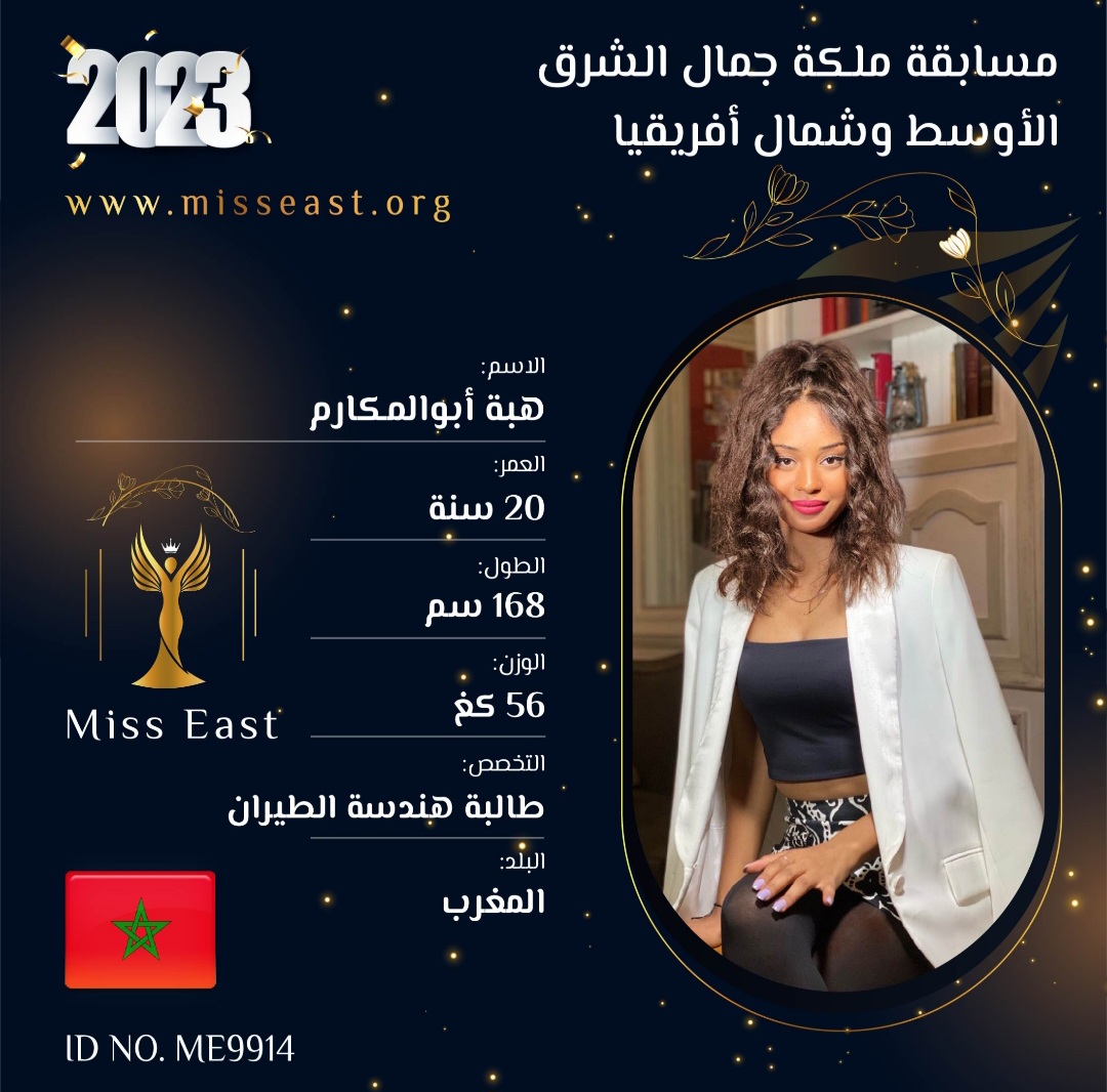 هبة أبوالمكارم 7 صوت العمر :20 الدولة : المغرب انضمت في : 2023-09-11 مشاركة على: Richmond Enterprise London Ltd
