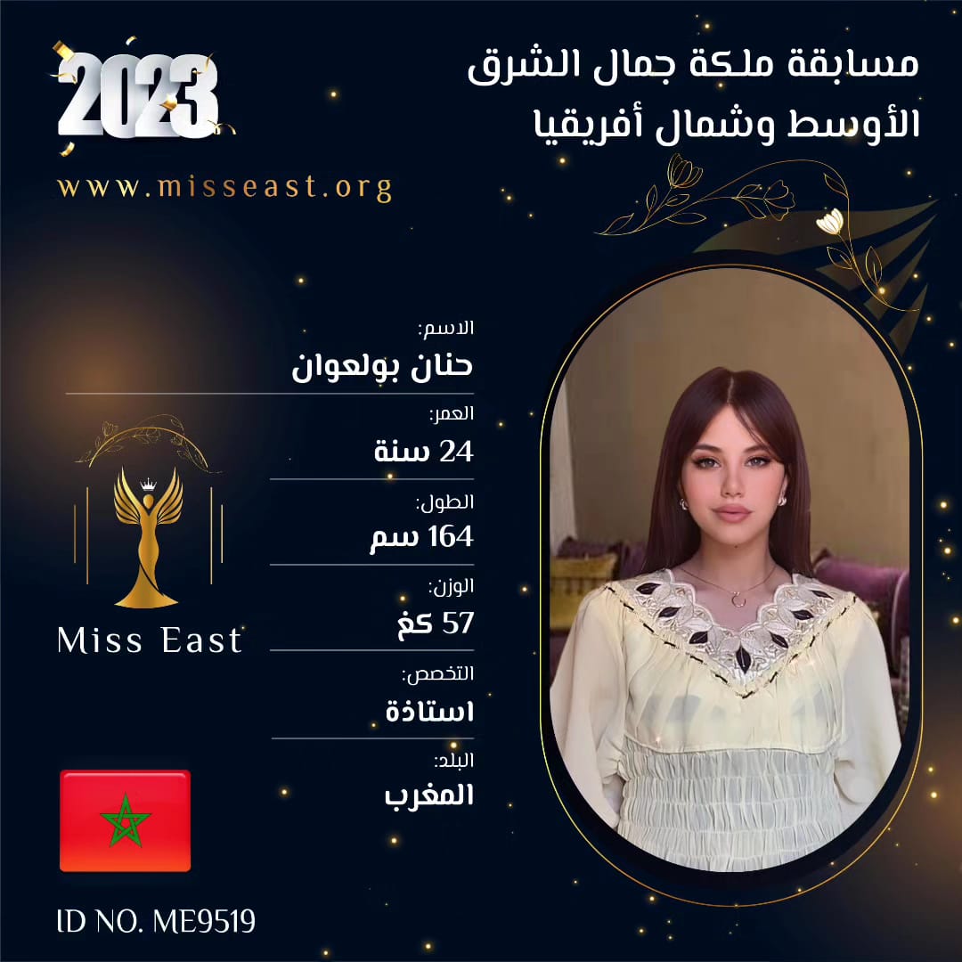 حنان بولعوان 0 صوت العمر :24 الدولة : المغرب انضمت في : 2023-06-13 مشاركة على: Richmond Enterprise London Ltd
