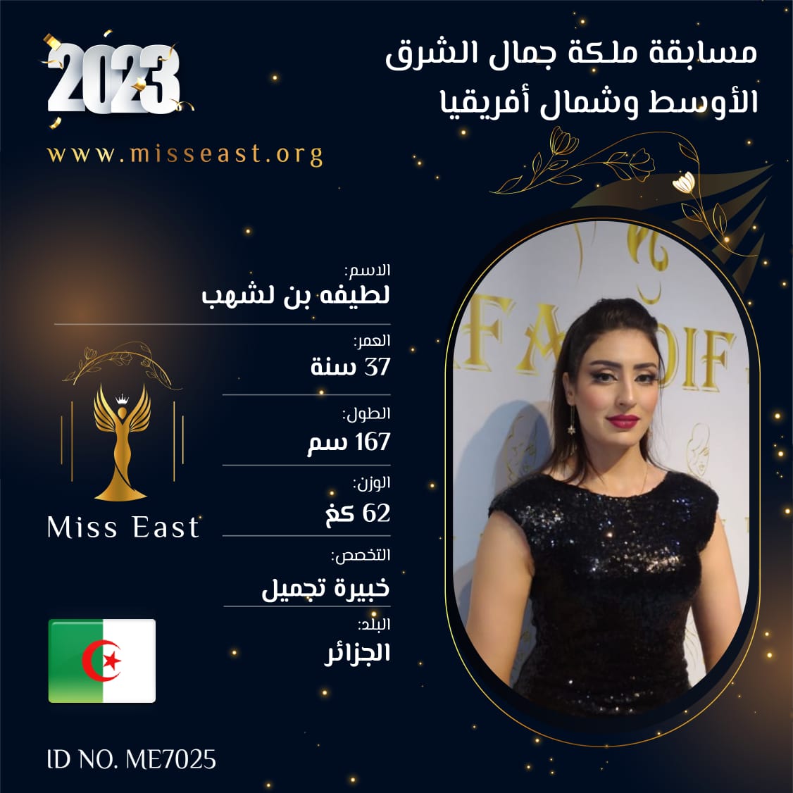 لطيفة بن لشهب 28 صوت العمر :37 الدولة : الجزائر انضمت في : 2023-09-01 مشاركة على: Richmond Enterprise London Ltd