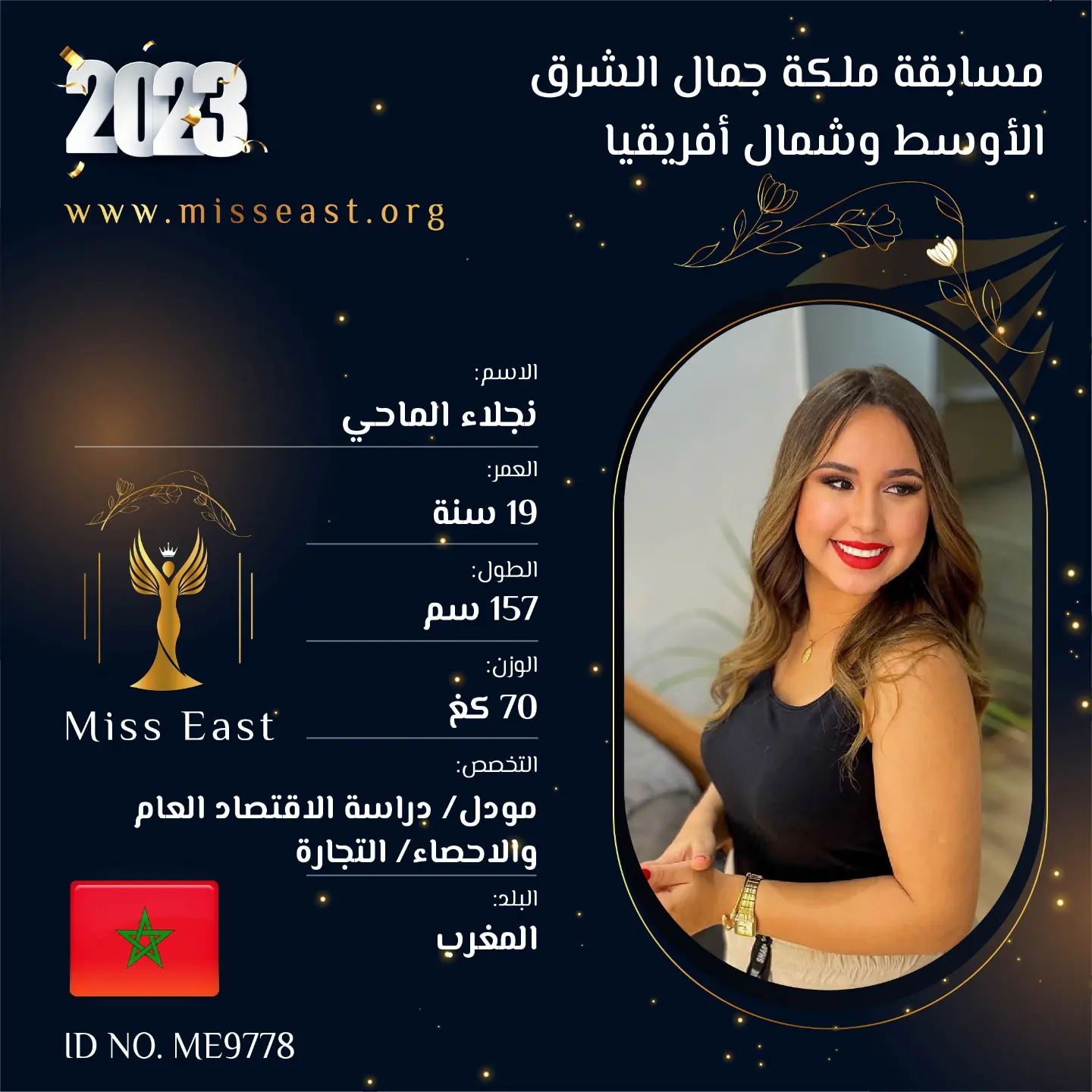 نجلاء الماحي 0 صوت العمر :19 الدولة : المغرب انضمت في : 2023-07-08 مشاركة على: Richmond Enterprise London Ltd
