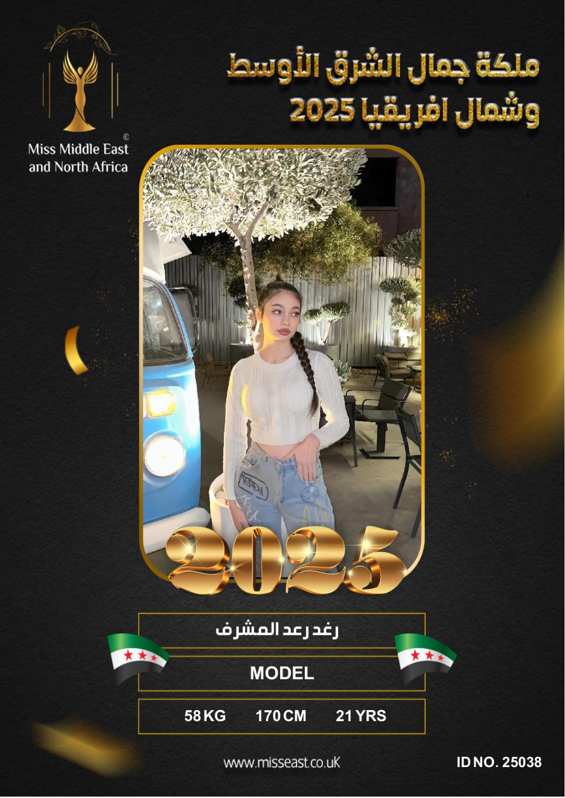 رغد رعد المشرف 0 صوت العمر :21 الدولة : سوريا التخصص : MODEL انضمت في : 2025-08-16 مشاركة على: Richmond Enterprise London Ltd