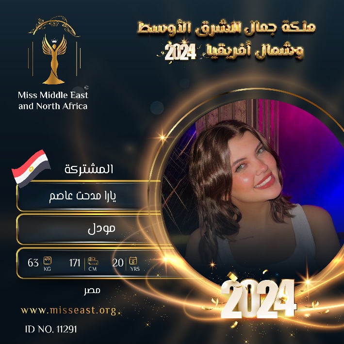يارا مدحت عاصم ملكة جمال الشرق الأوسط وشمال أفريقيا عن مصر لعام 2024 0 صوت العمر :20 الدولة : مصر انضمت في : 2024-03-10 مشاركة على: Richmond Enterprise London Ltd