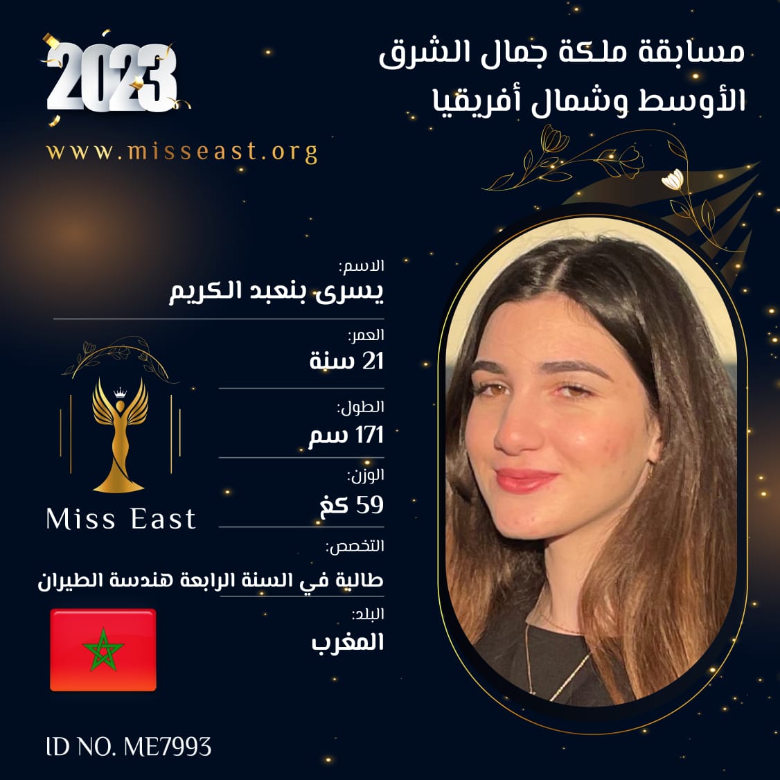 يسرى بنعبد الكريم 0 صوت العمر :21 الدولة : المغرب انضمت في : 2022-11-22 مشاركة على: Richmond Enterprise London Ltd