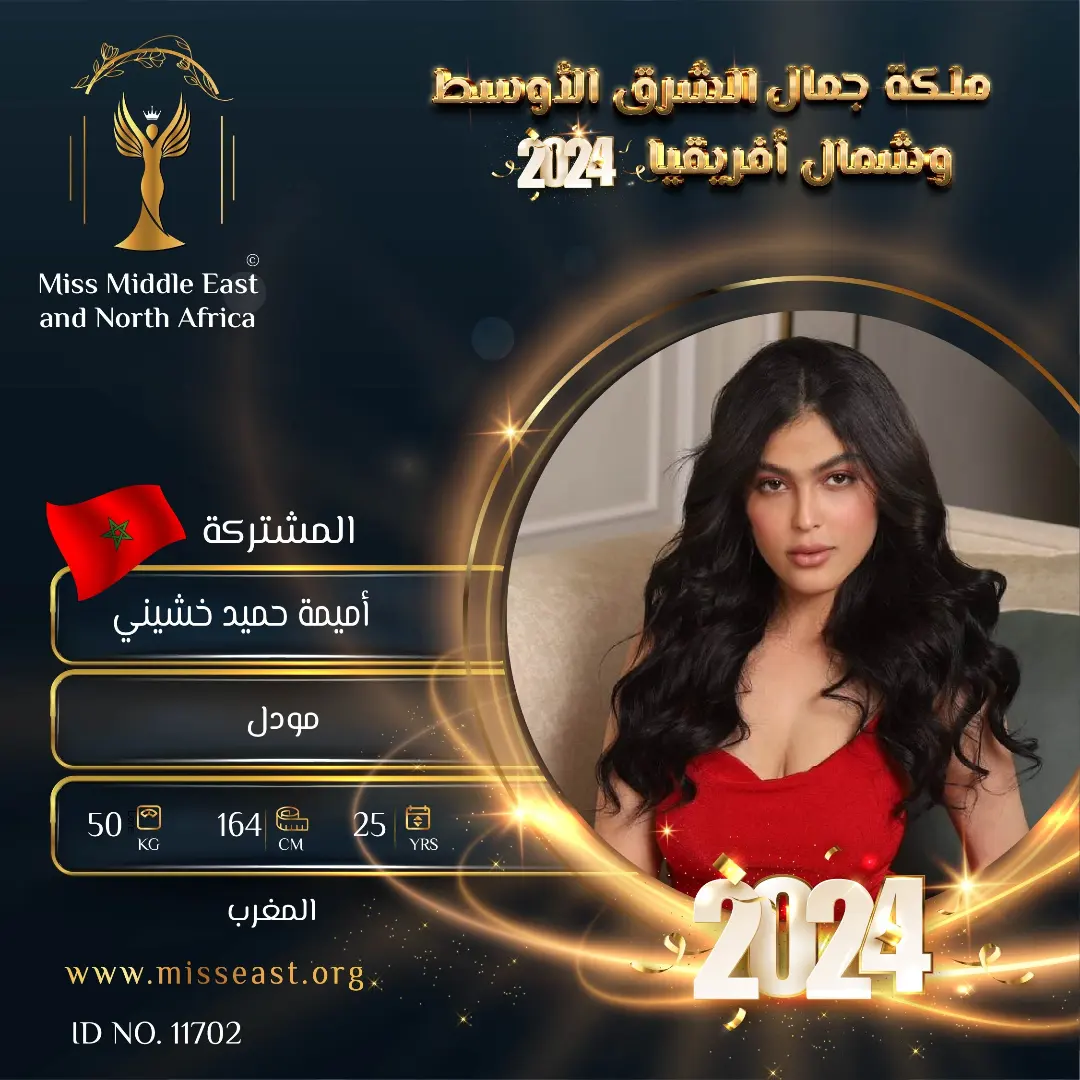 أميمة حميد خشيني الوصيفة الأولى لملكة جمال المغرب لعام 2024 0 صوت العمر :25 الدولة : المغرب انضمت في : 2024-04-28 مشاركة على: Richmond Enterprise London Ltd
